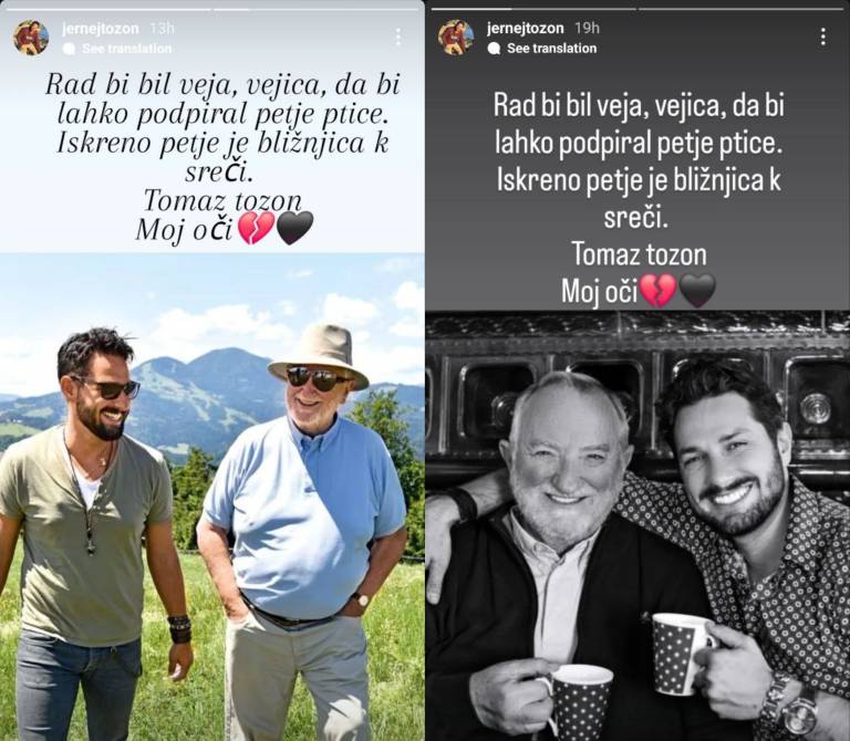 Jernej Tozon, član priljubljene glasbene skupine Čuki, se je po smrti očeta Tomaža Tozona oglasil na družbenih omrežjih in z oboževalci delil čustven zapis ter dve fotografiji.