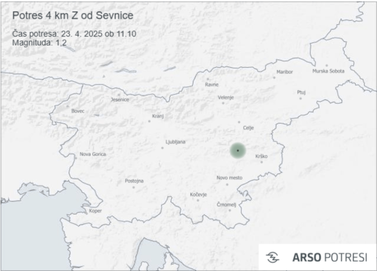 Danes, ob 11.10, po lokalnem času so prebivalci krajev zahodno od Sevnice začutili šibek potresni sunek.