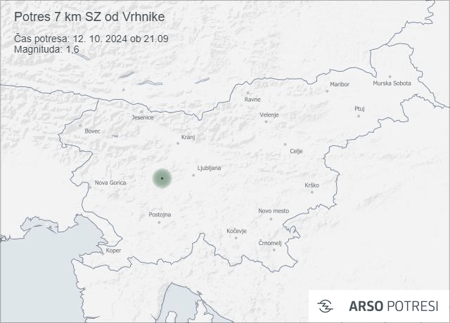 Seizmografi državne mreže potresnih opazovalnic so v soboto ob 21.09 zabeležili šibek potresni sunek, magnitude 1,6.