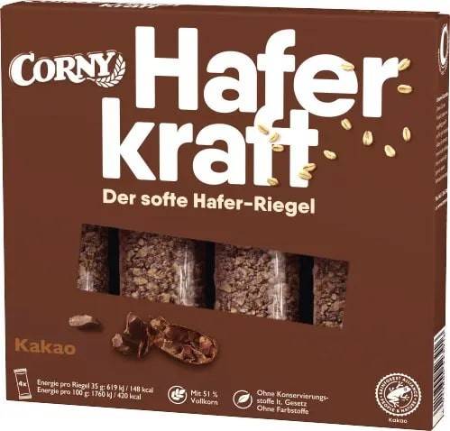 Umik izdelka Corny moč ovsa rezina s kakavom 140 gramov.