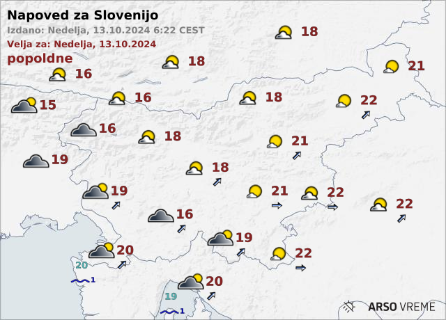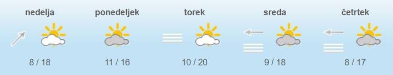 Najvišje dnevne temperature bodo od 16 do 22 stopinj Celzija.