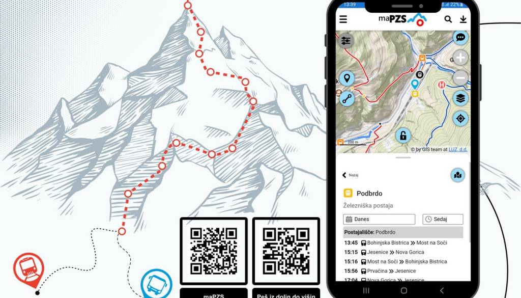 Aplikacija Planinske zveze Slovenije za lažje načrtovanje izletov in orientacijo na terenu maPZS po novem vključuje tudi tako imenovani sestavljalnik poti ter prikaz voznih redov avtobusov in vlakov na vseh postajališčih v Sloveniji.