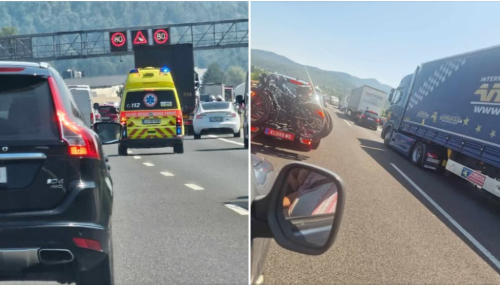 Nastal je zastoj preko priključka Logatec, kjer se pot močno upočasni.