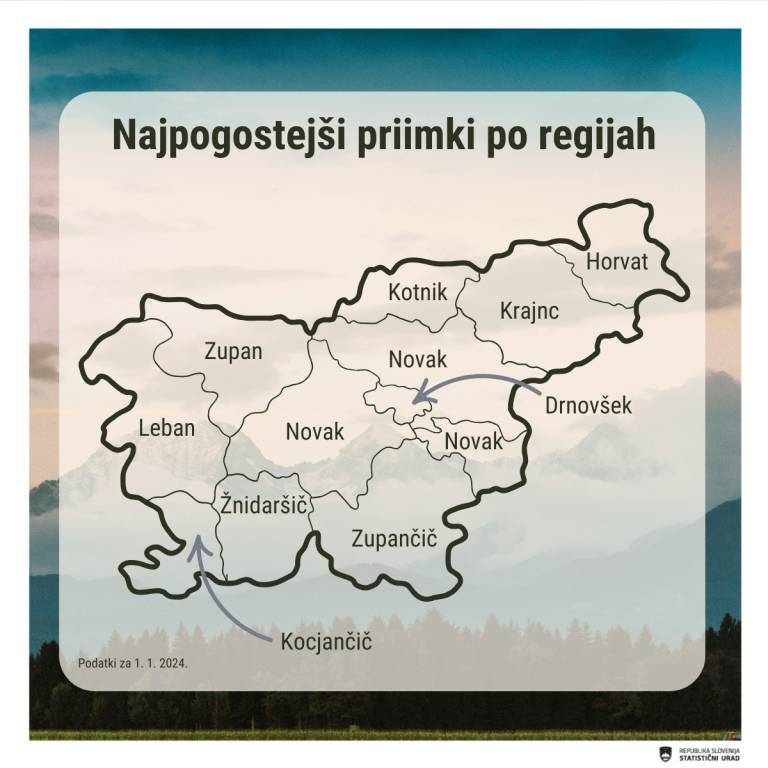 Med njimi so še vedno najbolj pogosti Novak, Horvat in Kovačič, vendar pa se zanimive razlike skrivajo na regionalni ravni.
