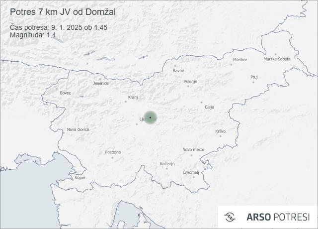 Seizmografi državne mreže potresnih opazovalnic so danes ob 1.45 zabeležili šibek potresni sunek magnitude 1,4.