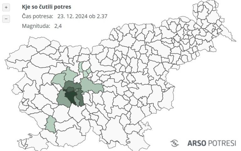 Seizmografi državne mreže potresnih opazovalnic so danes ob 2.37 zabeležili zmeren potresni sunek, magnitude 2,4.