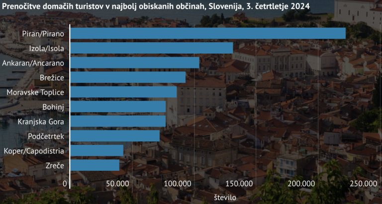 Po podatkih nastanitvene statistike so domači turisti v najetih nastanitvenih obratih v tretjem četrtletju lani ustvarili 1,6 milijona prenočitev, od tega jih je bilo skoraj 30 odstotkov v treh obmorskih občinah – Piranu, Izoli in Ankaranu, kažejo podatki SURSA.