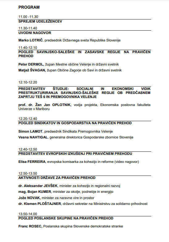 »Namen posveta je, da bi odločevalci, predstavniki lokalnih okolij, strokovnjaki, nevladne organizacije in drugi ključni deležniki jasno opredelili pojem pravičnega prehoda.