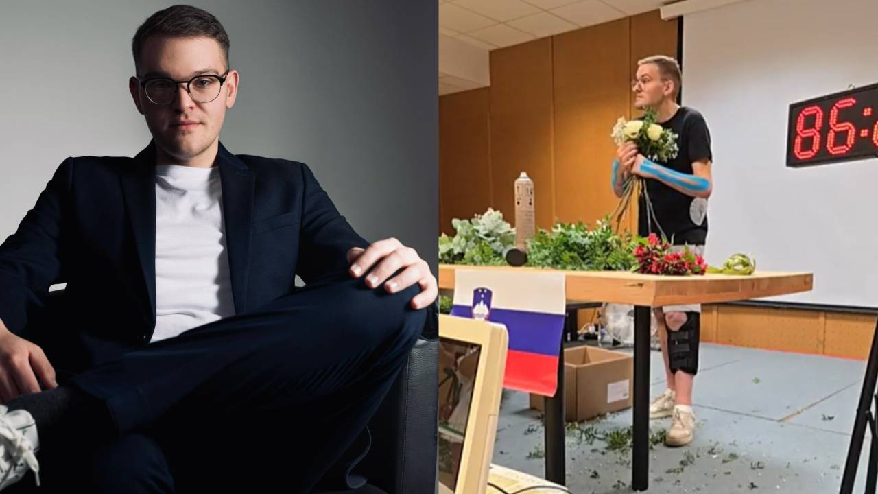 Koroški florist Žan Žolger je v prostorih MKC v Slovenj Gradcu ob 8. uri začel cvetlični maraton, v katerem namerava 24 ur izdelovati šopke in s tem postaviti Guinnessov rekord v izdelovanju šopkov.