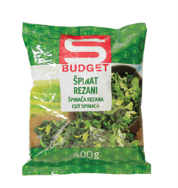 - Ime izdelka: S-Budget špinača, 400 g, uporabno najmanj do: 19.4.2026; pakirano v vrečki, zamrznjen proizvod,