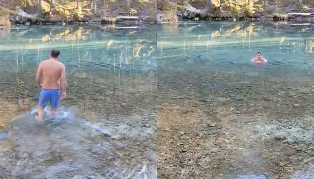 A objava je hitro sprožila razpravo – ali je znani Slovenec kršil pravila, saj je kopanje na izviru reke prepovedano?