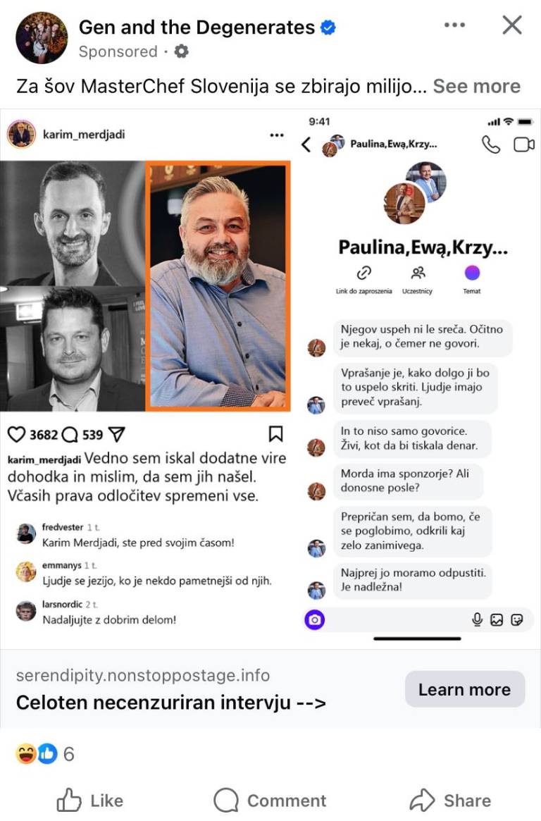 V zadnjih dneh so se na Facebooku in Instagramu začele pojavljati plačane objave, ki širijo lažne informacije o tem, kako naj bi voditelji kuharske oddaje MasterChef Slovenija zaslužili ogromne vsote denarja.