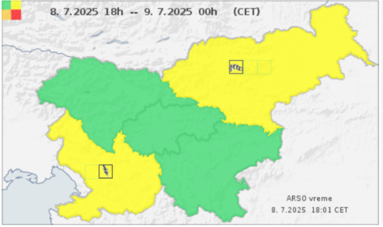 Agencija opozarja na hitro spreminjajoče se razmere in svetuje previdnost, zlasti ob gibanju na prostem in v bližini vodotokov.