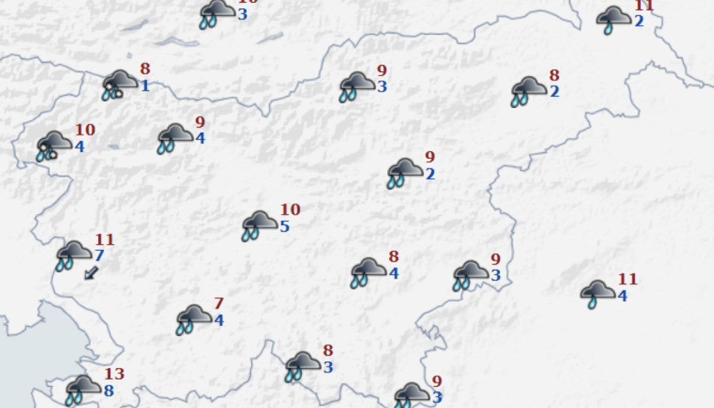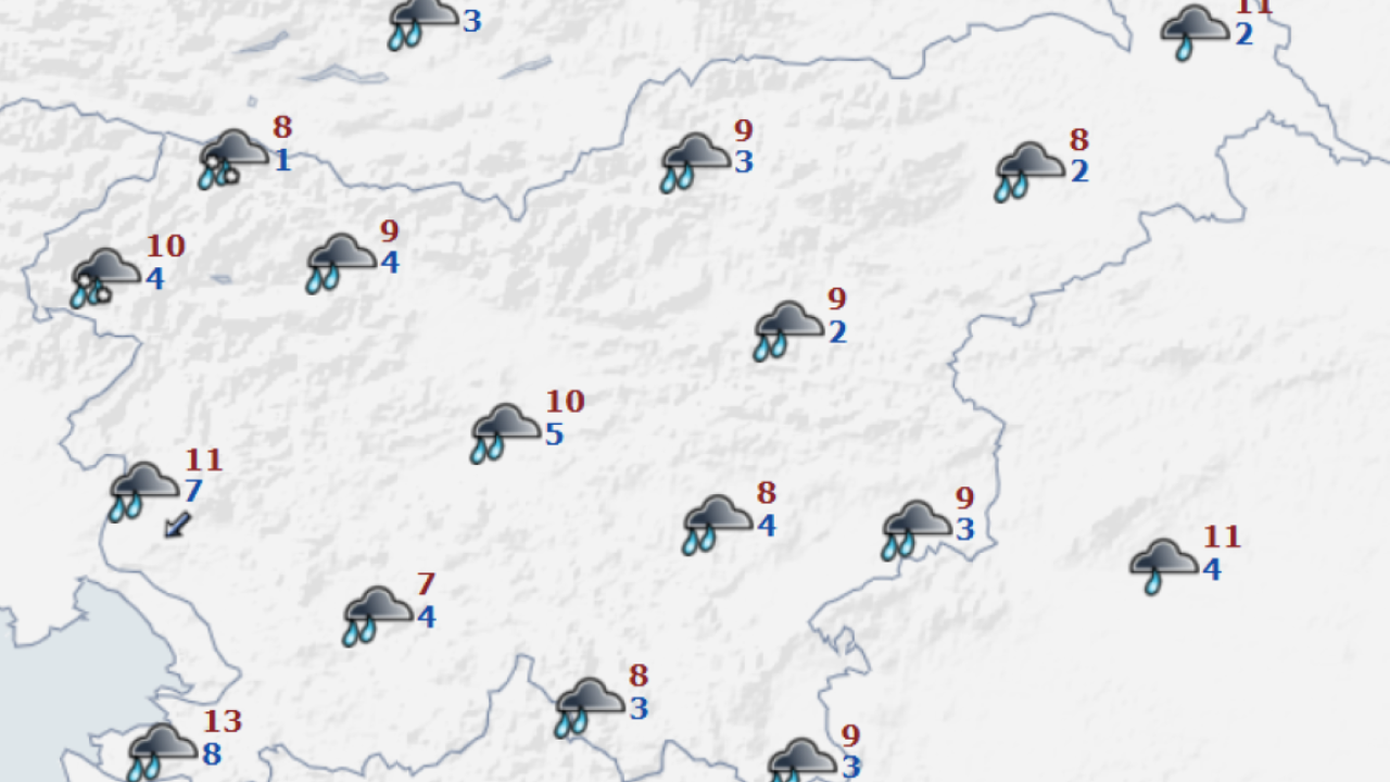 Še največ dežja je mogoče pričakovati v sredo. Temperature bodo zjutraj od 2 do 11 stopinj Celzija.