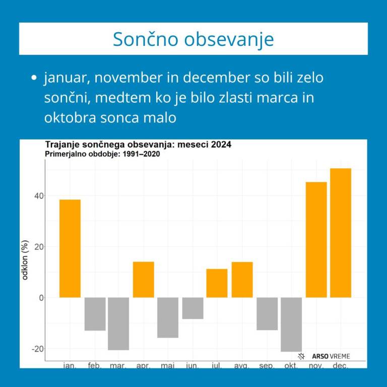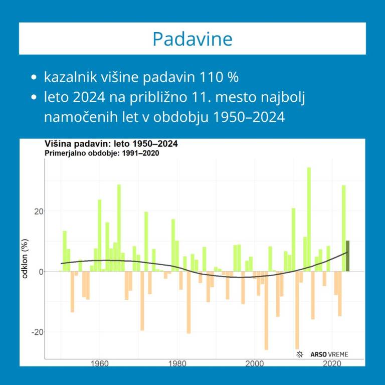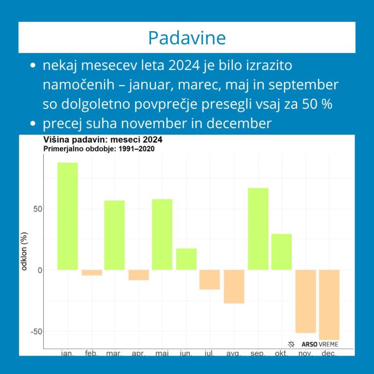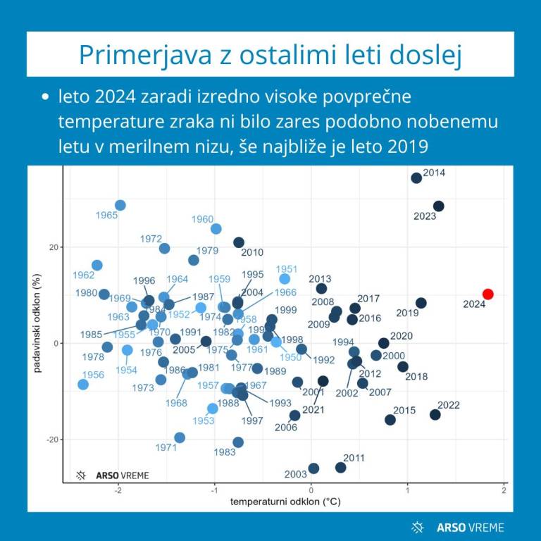Vremenoslovci ob tem navajajo, da je leto 2024 po temperaturno-padavinski statistiki precej odstopalo od vseh let obdobja 1950–2024, še najbolj podobno mu je leto 2019.