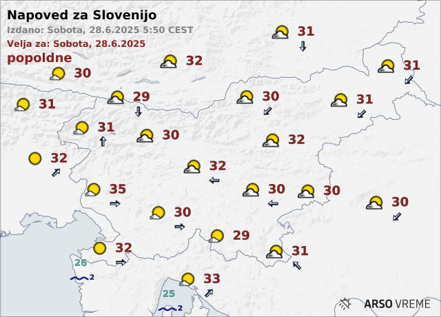 Najvišje dnevne temperature bodo okoli 30, na Primorskem do 34 stopinj Celzija.