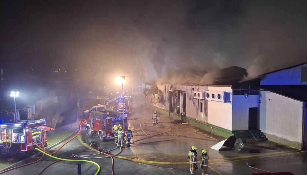 Velik požar v Luciji, gori enota Kmetijske zadruge Agraria Koper.