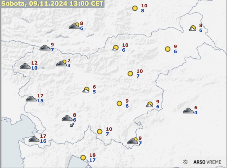 Najvišje dnevne temperature bodo od 5 do 9, na Goriškem in ob morju do 18 stopinj Celzija, je zapisano na spletnih straneh Agencije Republike Slovenije za okolje.