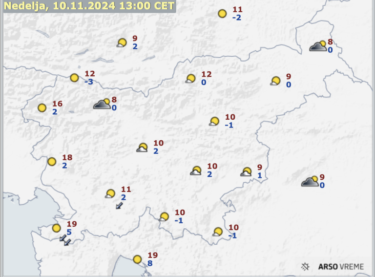 Najnižje jutranje temperature bodo od -3 do 3, ob morju okoli 5, najvišje dnevne od 5 do 10, na Goriškem in ob morju do 18 stopinj Celzija.