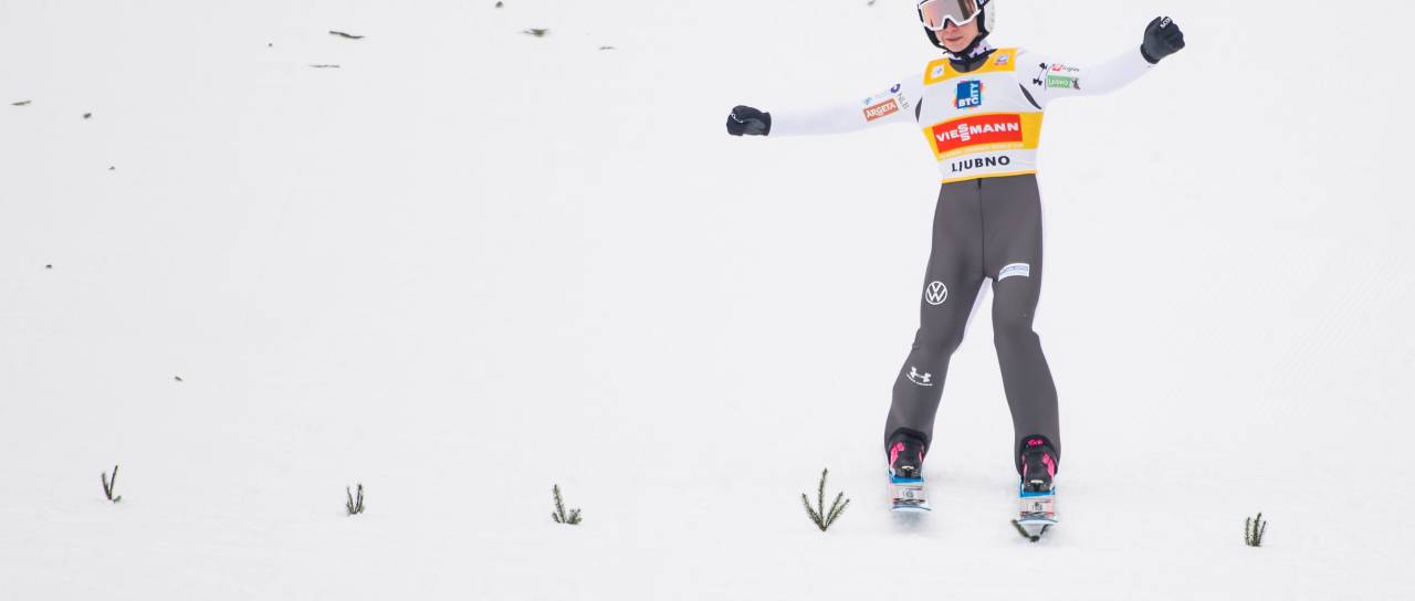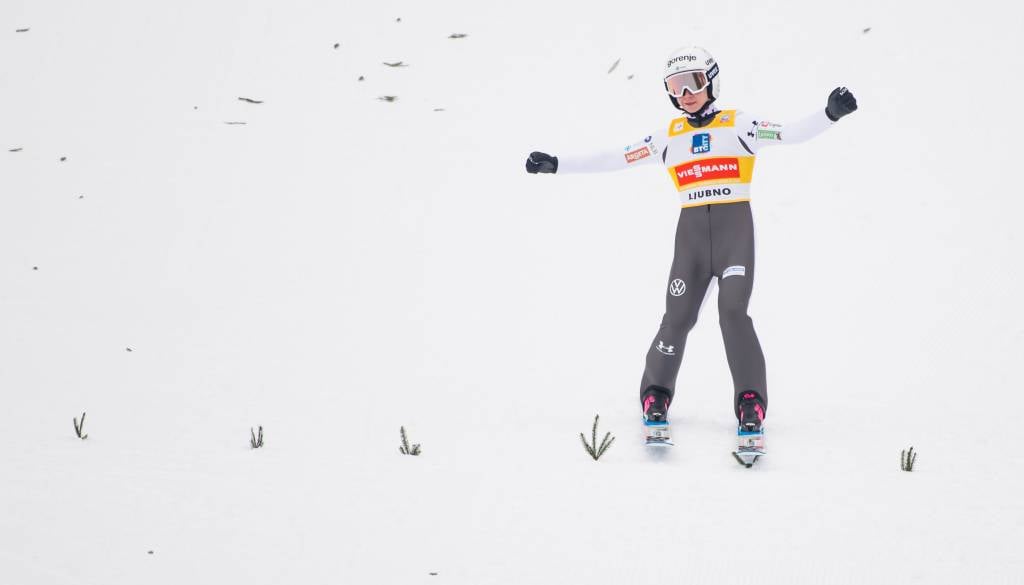V drugi seriji z dolgimi skoki je nato Nemka pred 19-letnico postavila velik izziv, a je bila temu najboljša skakalka to zimo več kot kos.