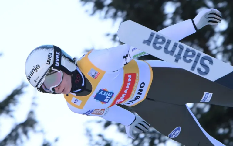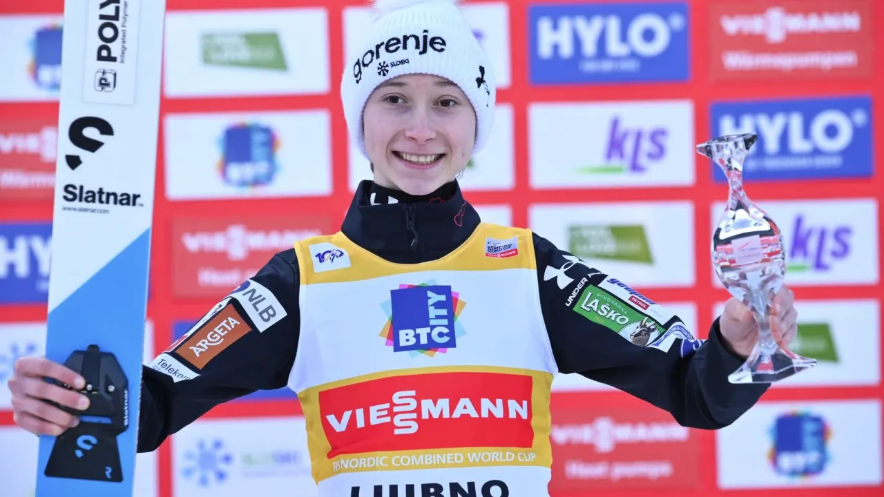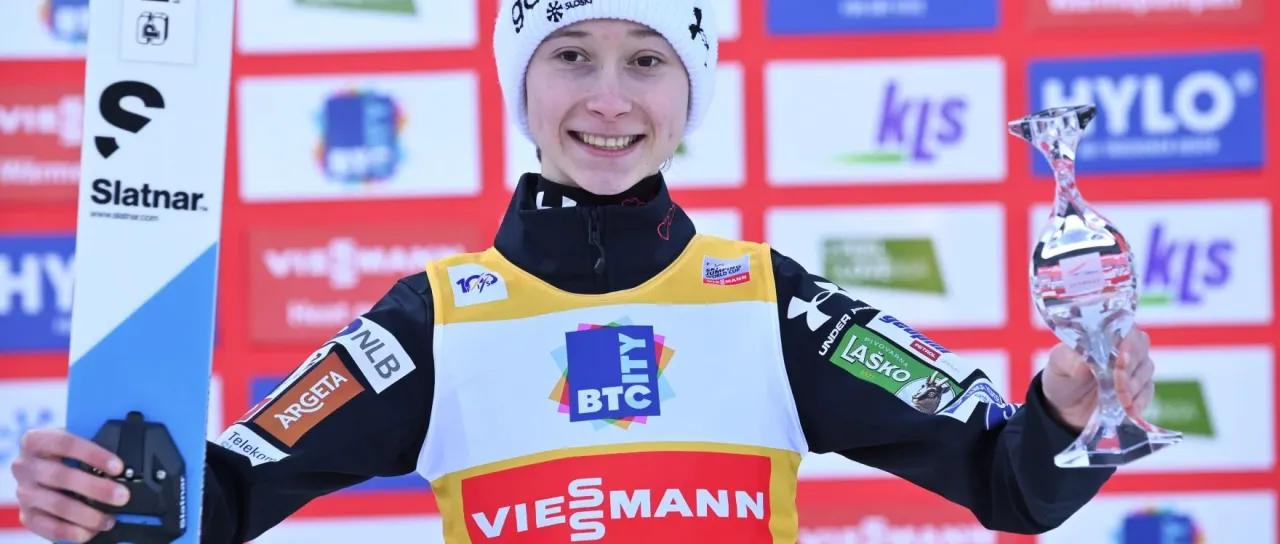 Nika Prevc danes na Ljubnem po zmago pred domačimi navijači.