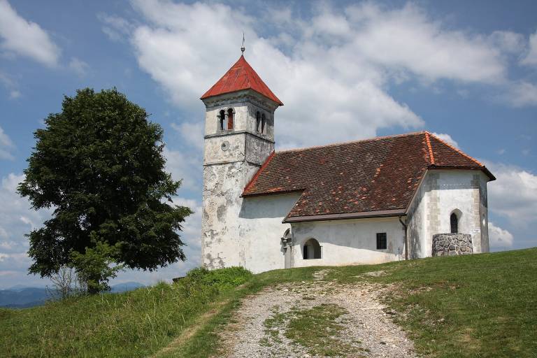 Od Podpeškega jezera vas vodi 30-minutni vzpon do cerkvice na griču, kjer se odpre pogled na Ljubljansko barje, Alpe, Krim in celo Triglav ob lepem vremenu.
