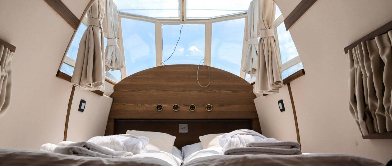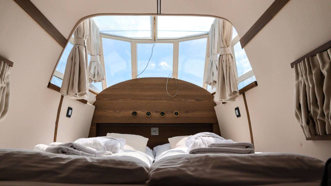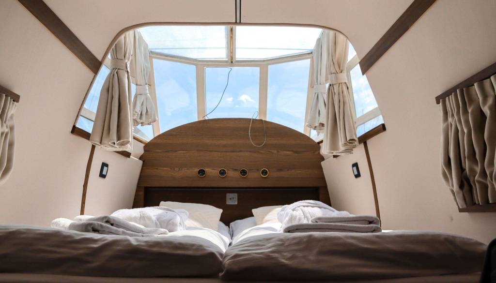 AirGlam je prvi slovenski letalski glamping, kjer lahko zaživite sanje o letenju brez letenja. S strehe štirizvezdičnega butičnega hotela, ki sta ga zakonca Gregorčič v celoti prenovila in opremila, sicer rojstna hiša slovenskega ornamentalista Jožeta Karlovška, zre na ulice in okolico.