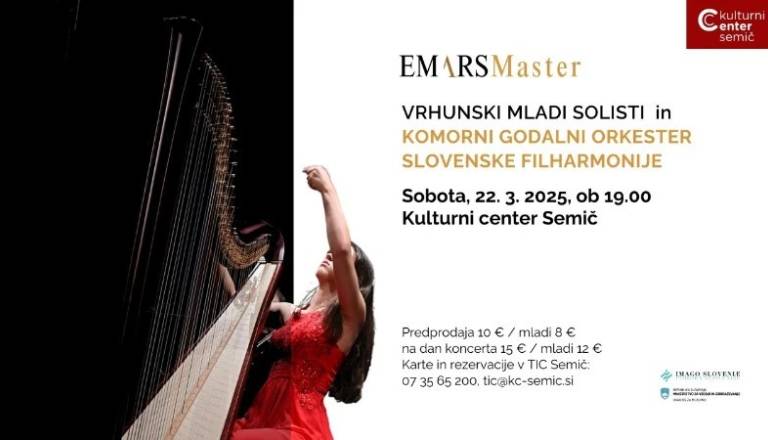 Kulturni center Semič vas ob 19. uri vabi na koncert Mladih solistov EMARSMaster in Komornega godalnega orkestra Slovenske filharmonije. Pripravljamo vam ...