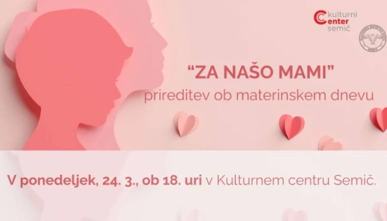 KD Orel Semič in Kulturni center Semič vas ob 18. uri vabita v KC Semič na prireditev ob materisnkem dnevu z naslovom “Za našo mami”. V programu bodo sodelovali ...