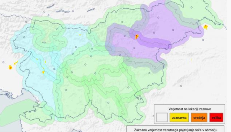Prižgani alarmi: Slovenija obarvana vijolično, prihaja toča